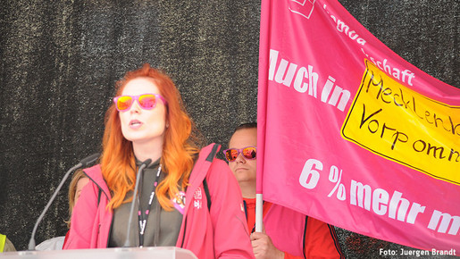 Bei der zentralen Demonstration in Schwerin ging die Vorsitzende der dbb jugend, Karoline Herrmann, hart mit den Arbeitgebern ins Gericht: „Es ist einfach erbärmlich, wie der öffentliche Dienst sehenden Auges vor die Wand gefahren wird. Über 1,2 Millionen Beschäftigte gehen in den nächsten zehn Jahren in Ruhestand. Dabei fehlen schon heute 200.000 Stellen oder sind nicht besetzt. Unternehmen der Privatwirtschaft ziehen alle Register, um Nachwuchs- und Fachkräfte für sich zu begeistern. Und was machen Bund, Länder und Kommunen? Die müssen wir zum Jagen tragen, weil sie die Zeichen der Zeit immer noch nicht erkannt haben.