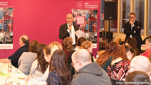 Der stellvertretende Vorsitzende der dbb Bundestarifkommission, Andreas Hemsing, unterstrich die Bedeutung einer bürgernahen Verwaltung mit Verweis auf die besonderen Herausforderungen der vergangenen Jahre. „Die Aufnahme und Versorgung von Menschen auf der Flucht wäre beispielsweise ohne den besonderen Einsatz der Kolleginnen und Kollegen – oft weit über die eigentlichen dienstlichen Pflichten hinaus – nicht möglich gewesen. Das verdient Anerkennung, und zwar nicht nur in Sonntagsreden, sondern auch ganz praktisch in Form von angemessenen Gehältern und ordentlichen Arbeitsbedingungen. Gerade in der Nachwuchsgewinnung muss etwa die derzeitige Befristungspraxis endlich ein Ende haben“, so Hemsing, der auch Bundesvorsitzender der komba gewerkschaft ist.