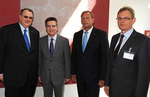 - Bild v.l.n.r.: dbb Chef Peter Heesen, Bundesverteidigungsminister Thomas de Maizière, VAB-Vorsitzender Herbert Schug und VBB-Chef Wolfgang Kamm