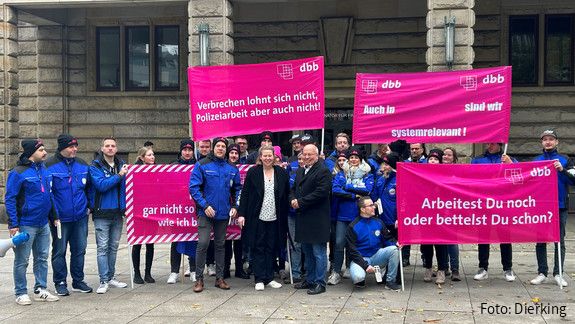 90 Prozent der Beschäftigten bei der Polizei sind verbeamtet und damit indirekt von den Tarifverhandlungen betroffen. Direkt betroffen sind Mitarbeitende in Verwaltung, Objektschutz und Systemadministratoren. Nickel: „Ohne all diese Menschen ist Polizeiarbeit nicht möglich. Es ist vollkommen unverständlich, warum die Dienstgebenden nicht die Gelegenheit nutzen, um auch ihre Arbeit wertzuschätzen!“