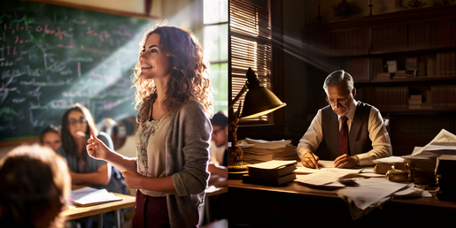 Wagen wir ein Experiment: 58 Prozent der Beschäftigten im öffentlichen Dienst sind Frauen. Wenn wir also eine KI bitten, ein Foto von einer Person, die im öffentlichen Dienst arbeitet, zu generieren, müsste auf den Fotos ja eine ähnliche Quote zustande kommen. Bei unserem Versuch mit verschiedenen Programmen zeigte allerdings nur knapp ein Drittel der Bilder Frauen (32 Prozent). Für die KI sind Beschäftigte im öffentlichen Dienst mit großer Mehrheit männlich. Und während die Männer in einer Vielzahl von Berufen und Umgebungen abgebildet wurden, wurden die Frauen in der Hälfte aller Fälle als Lehrerinnen abgebildet. Wie kann das sein?