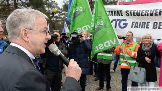 Vor Beginn der vierten Verhandlungsrunde am 28. März 2015 in Potsdam hat der Zweite Vorsitzende und Verhandlungsführer des dbb, Willi Russ, von der Tarifgemeinschaft der Länder (TdL) ein umfassendes Angebot verlangt. Russ: „Heute darf es keine Verzögerungen und Unklarheiten mehr geben. Wir haben in drei Verhandlungsrunden alle Details der Einkommenssituation der Kolleginnen und Kollegen diskutiert und die Position der Gewerkschaften dargestellt. Was immer noch fehlt, ist eine klare Ansage der TdL zur Arbeitgeberposition.“