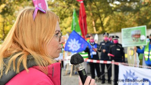 dbbj Chefin Karoline Herrmann bei der Demo der Beschäftigten zum Auftakt der zweiten Verhandlungsrunde am 19. September 2020 in Potsdam.