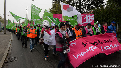 „Mit dem, was die Arbeitgeber uns zum Ende der zweiten Verhandlungsrunde auf den Tisch geknallt haben, haben sie die Atmosphäre gründlich vergiftet. Auch in den Betrieben! Denn das, was die Arbeitgeberseite ein, faires Angebot` nennt und als 3,0 Prozent mehr anpreist, ist in Wahrheit eine Mogelpackung, die nicht einmal zwei Prozent wert ist. Obwohl der alte Tarifvertrag im Februar auslief, sollt Ihr dieses Jahr bis Juni gar nichts bekommen und 2017 auch erst wieder ab Juni. Das ist ein Billigangebot, das wir nicht haben wollen“, empörte sich der stellvertretende Vorsitzende der dbb Bundestarifkommission und Chef der Gewerkschaft der Straßen-und Verkehrsbeschäftigten (VDStra), Siegfried Damm, auf dem Platz vor der Lorenzkirche.